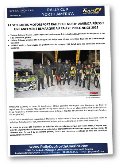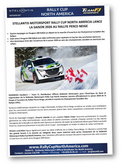 - A partir de 2026, Stellantis Motorsport organisera la Stellantis Motorsport Rally Cup North America réservée à la Peugeot 208 Rally4